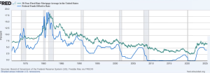 The first graph is a 60 year history of the correlation between the Fed funds rate and the 30 year mortgage. You can see they move fairly similarly, but not necessarily in lock step. The second graph shows the the negative correlation that has been happening over the last 10 months. It’s an interesting phenomenon and will remedy itself here shortly. Our hope/expectation is for mortgage rates to go down and not the Fed to raise rates.